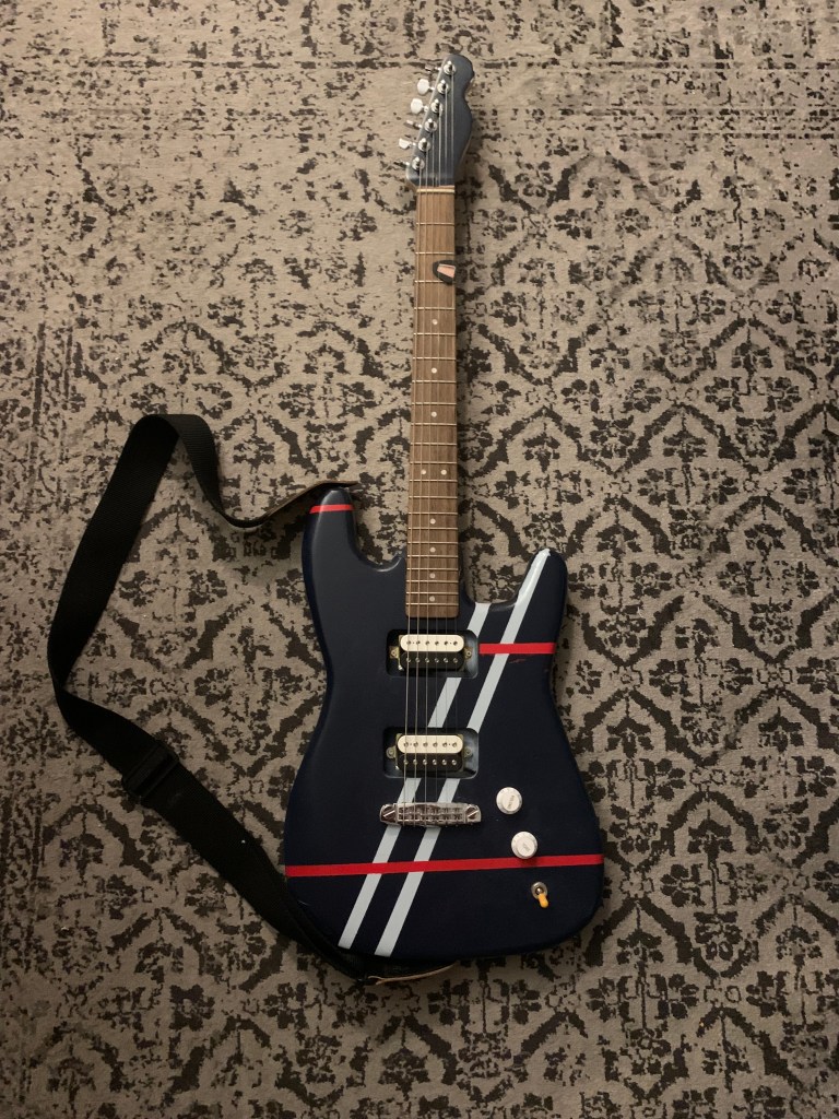 This is the final product. I also taped up the guitar to spray paint it. It plays really well and I think it turned out great. The pickups sound amazing with the amp I’m proud of the work I did on this project.